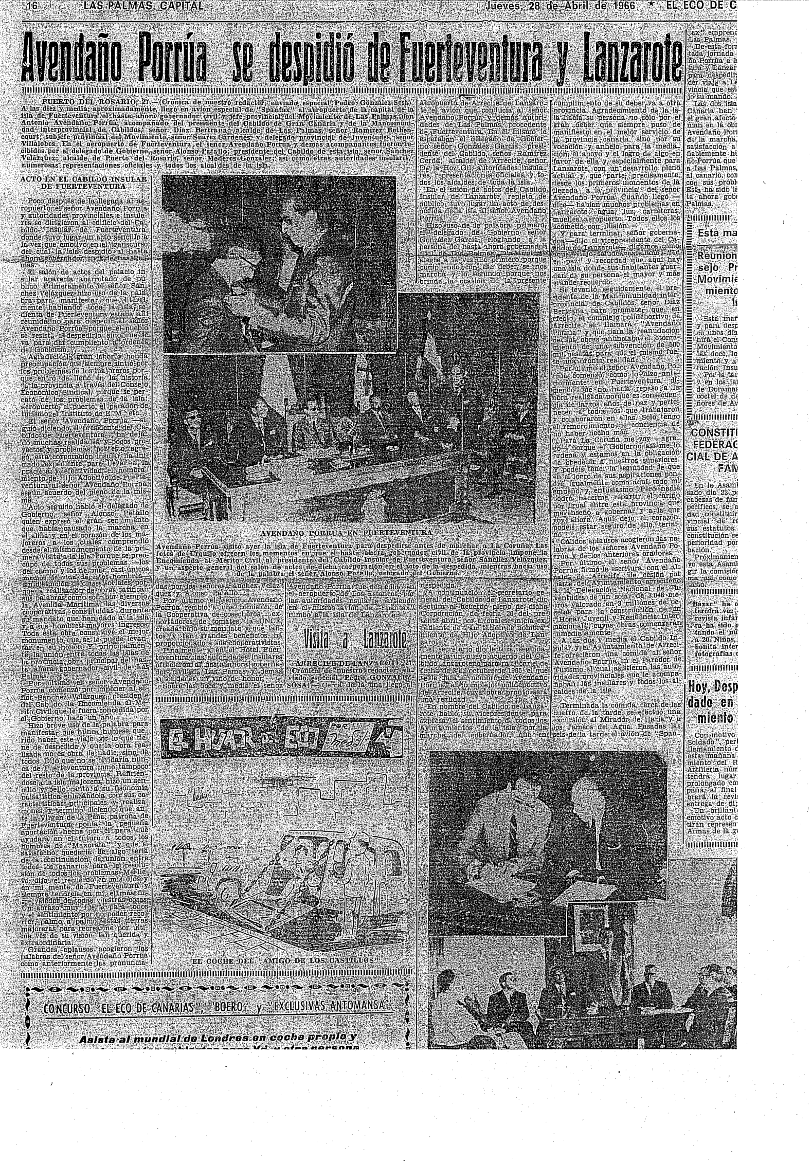 1966 Eco de Canarias. Despedida de Avendaño Porrúa